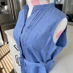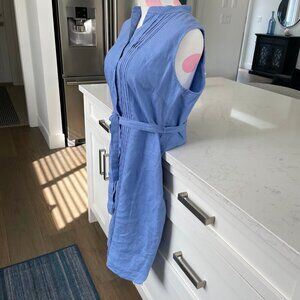 L.L. Bean 100% Linen Sleeveless Button Down Pleated & Belted Midi Dress in Cornflower Blue NWOT