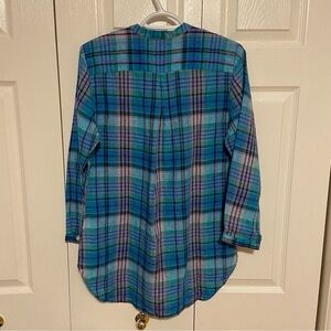 L.L.Bean 100% Linen Premium Washable Linen Long Tunic Top Plaid Small