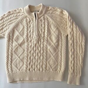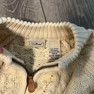 LLBean 1/4 zip Fisherman’s sweater cable knit cream size 10/12