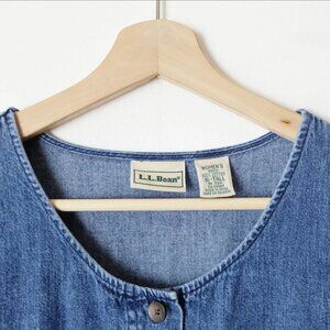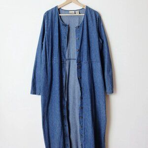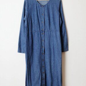 L.L.Bean Denim Long Sleeve Button down Collarless Dress/Light Denim Coat