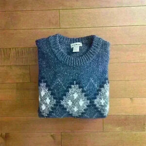 L.L.Bean | Vintage 80s blue wool silk blend geometric knit sweater size large