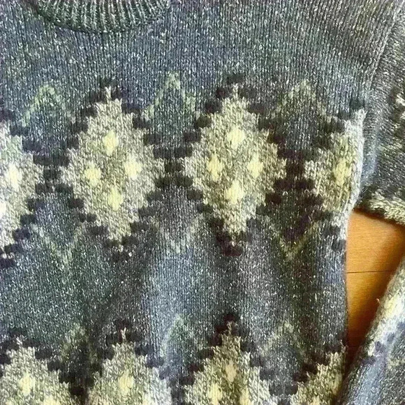 Vintage 80s blue wool silk blend geometric knit sweater size large