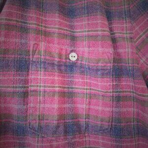 Features: • Style Profile: L.L.Bean Women Pink & Blue Plaid Flannel Shirt Collarless Neckline Preppy Library Western with a Single Pocket