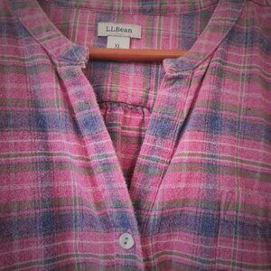 L.L.Bean Women Pink&Blue Plaid Flannel Shirt Collarless Neckline Preppy Western