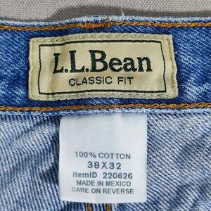 L.L.Bean jeans man's size 38X32 medium washed denim blue classic fit straight