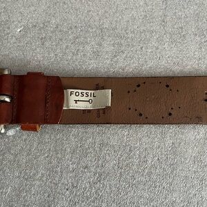 [L/Length:45”]VTG Fossil Brown Leather Belt with Floral Prints Silver Studs