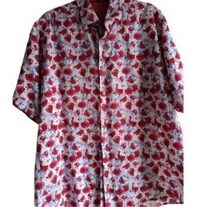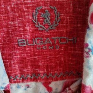 L🌴Bugatchi Linen Floral Red Casual Button Down Shirts, Size L/G, classic fit, armpit to armpit 25", length 29". 100% Linen.
