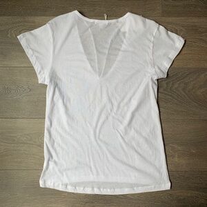 LNA Deep V Strappy Tee T-Shirt Short Sleeve Semi Sheer Relaxed fit White Small