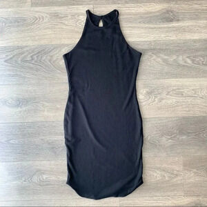 LNA Elise Mini Dress Black Rib Knit Sleeveless Jersey High Neck Round hem Small