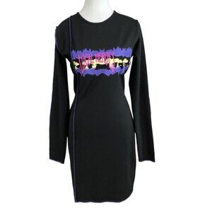 LOCAL HEROES FANTASY BLACK NEON GRAPHIC CUT OUT LOGO BODYCON DRESS