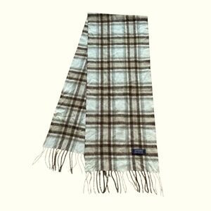 DESCRIPTION: This scarf is a Soft to touch winter essential! Classic plaid in brown, grey and cream. Fringes