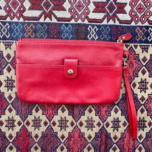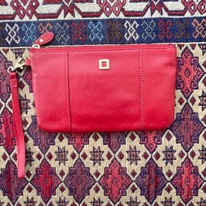 This LODIS wristlet/wallet in ruby red pebbled leather is of fine quality.