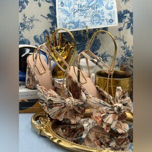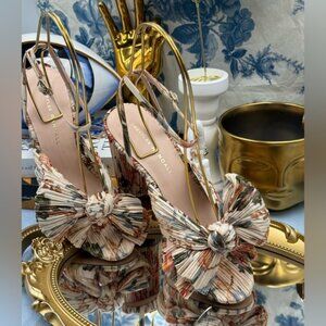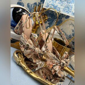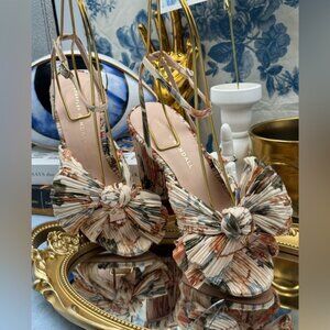 🆕 LOEFFLER RANDALL 🧿 NWOB Camellia Pleated Bow Heel Cream Botanical Floral, 7