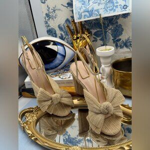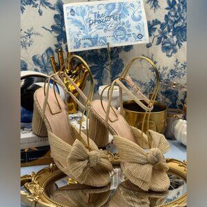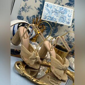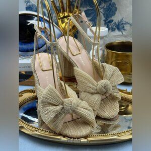 🆕 LOEFFLER RANDALL 🧿 NWOB Camellia Pleated Bow Heels, Cream Sparkle Mesh, Sz 7