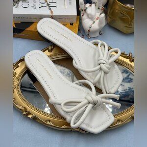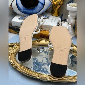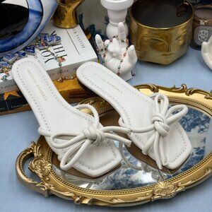 🆕 LOEFFLER RANDALL 🧿 NWOB Hadley Leather Bow Flat Sandals, White - Sz 6 B
