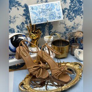 🆕 LOEFFLER RANDALL 🧿 NWOB Mikel Leather Bow Heel Sandal, Dune Leather - Sz 7