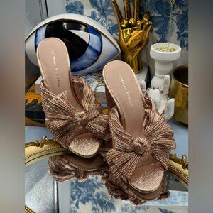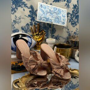 🆕 LOEFFLER RANDALL 🧿 NWOB Penny Metallic Rose Gold Pleated Bow Mule Heel, Sz 7