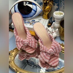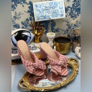 🆕 LOEFFLER RANDALL 🧿 NWOB Penny Soft Pink Gingham Pleated Bow Heel, Sz 7