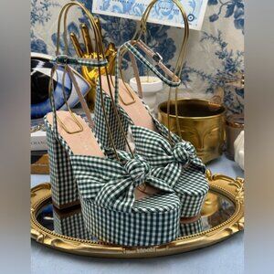 🆕 LOEFFLER RANDALL 🧿 NWOB Roz Platform Sandal, Mint Green Gingham - Sz US 7