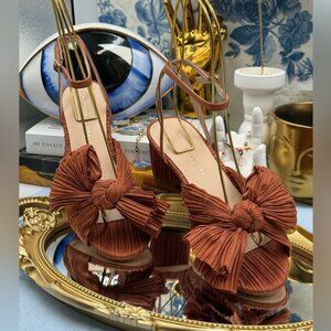 🆕 LOEFFLER RANDALL 🧿 NWOT Dahlia Terracotta Pleated Bow Mid Heel, Sz 7
