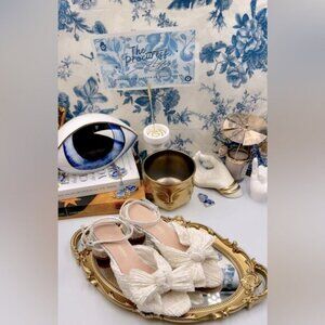 🆕 LOEFFLER RANDALL 🧿 NWOT Dahlia White Lace Bow Mid Heel, Sz 6