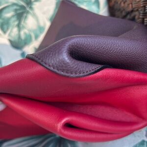 From the 2017 collection of JW Anderson, a beautiful rouge and oxblood calfskin Sling hobo with gold plated hardware. Detachable long strap, one exterior zip pocket and one interior as well. The interior is natural suede.
