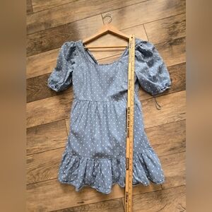Charming blue dress with playful polka dots. Perfect for any occasion.
