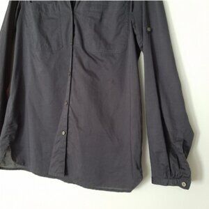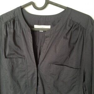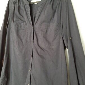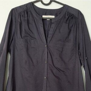 LOFT Ann Taylor 100% Cotton Utility Sleeve Button Down Shirt Top Navy Blue Sz S
