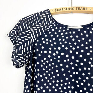 LOFT Ann Taylor Womens XS Petite Navy & White Dot Pattern Tribal T-Shirt Blouse