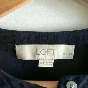 LOFT Baby Doll Navy Blue Boho Bohemian Sheer Bell Sleeves Blouse XXS Petite