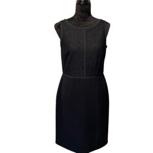 LOFT Black Ponte Knit Sleeveless Lace Accented Top Sheath Dress Career Size 6