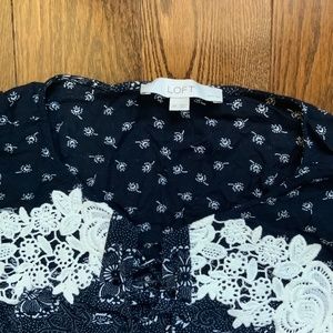 LOFT Black and White Floral Flowy Shirt. Size S Petite.