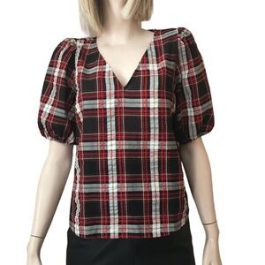 LOFT Blouse Rayon blend Plaid Seersucker Puckered Top Shirt Short Sleeve XS-S