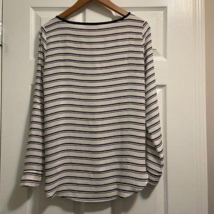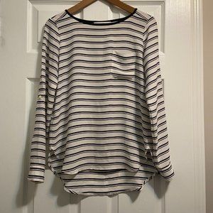 LOFT Blouse White and Black Stripes XS