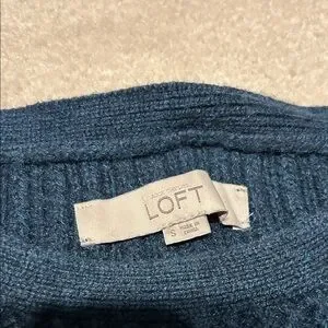 Beautiful LOFT sweater in a rich deep blue color. Designed with a ribbed knit body and cable-knit detailing along the sleeves and shoulders for a classic, textured look. Soft cotton-blend material makes it comfortable and perfect for layering in cooler weather.