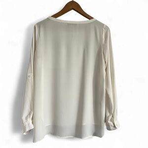 Chic cream blouse with a front pocket. Ideal for versatile styling. Soft and elegant design.