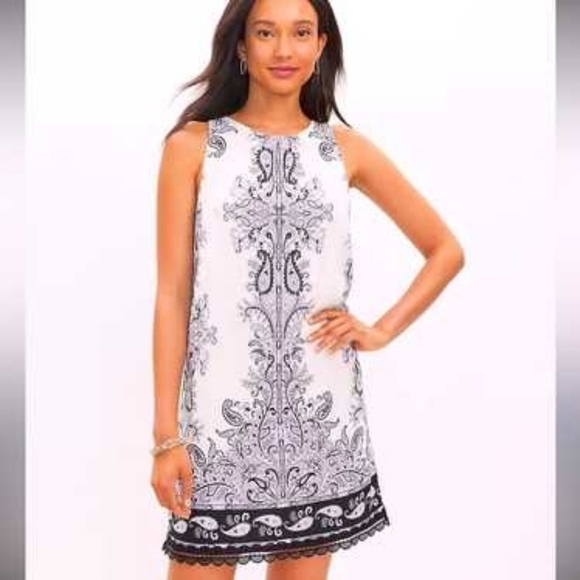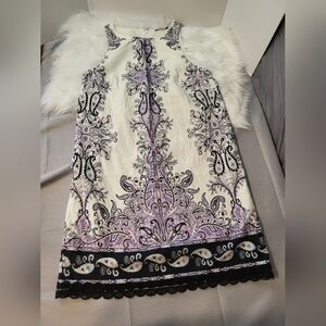 LOFT Elegant White and Lavender Midi Dress, Size 6