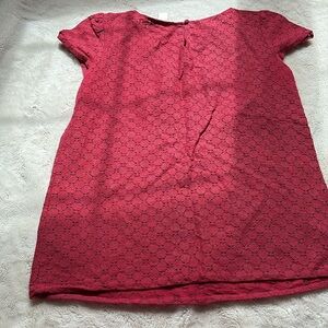 Keywords: LOFT top, eyelet lace shirt, cotton blouse, cap sleeve top, red LOFT shirt, women’s casual top, feminine workwear, spring summer top, breathable fabric, closet essential