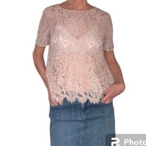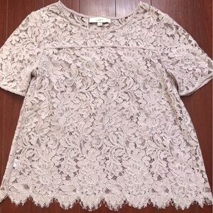 Ann Taylor Loft Lace Pink Crew Neck Short Sleeve Blouse size small