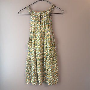 LOFT Green White Yellow Floral Flowy Boho Halter Cami Tank Top, New! Small