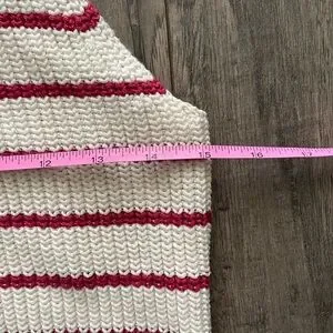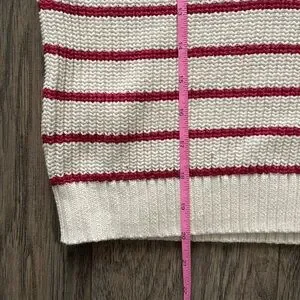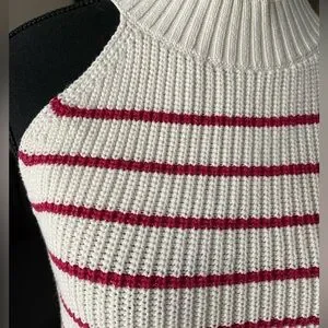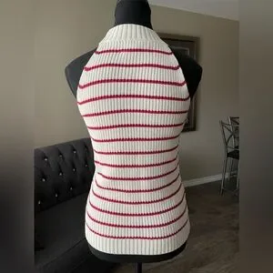 Knit, sleeveless top with red shimmery stripes throughout. Cotton blend. In excellent condition.