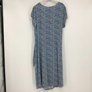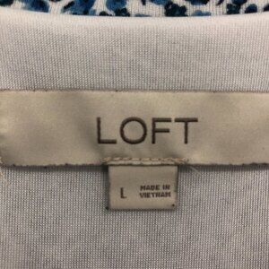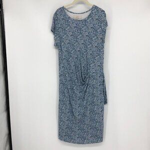 LOFT Light blue white dotted side gather short sleeve rayon midi sheath dress L