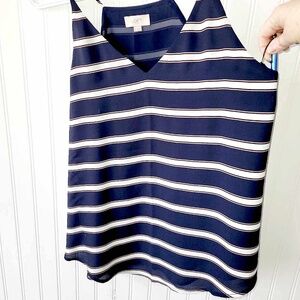 LOFT Lined Navy Pink Cream Stripes Flowy Spagetti Strap Camisole Top size Medium