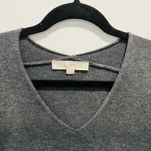 LOFT Petite Long Sleeve V Neck Grey Oversized Fall Knit Sweater size Small