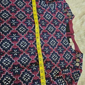 Check out this LOFT Petite women's Maroon Geometric Floral Pattern Quilted Jacquard Mini Dress is in excellent pre-owned condition, no rips no stains on it.
