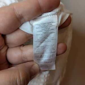 The crisp white sleeveless design is accented with beautiful blue embroidery and delicate ruffles, creating a sweet and feminine look.