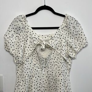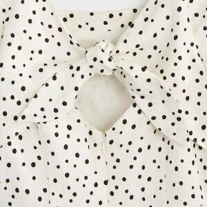 Adorable LOFT dress features a timeless black-and-white polka dot print, flattering A-line silhouette, and puff sleeves for a feminine touch. The back tie detail and peek-a-boo keyhole cutout add charm and shape, while the square back neckline offers a clean, modern finish.