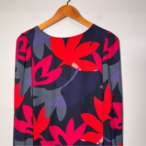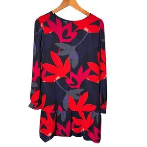 LOFT Red Flounce Fleur Floral Drop Waist Long Sleeve Shift Dress Size Small