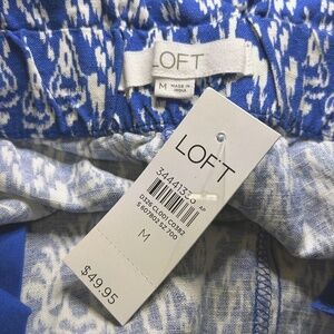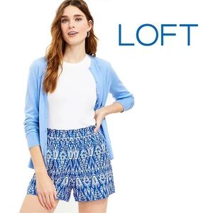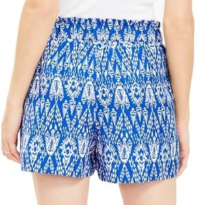LOFT Shorts Ikat Fluid Pull On Linen Blend Hi Waist Tiki Print Side Pockets