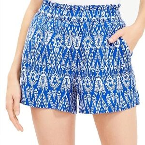 LOFT Shorts Ikat Fluid Pull On Linen Blend Hi Waist Tiki Print Side Pockets